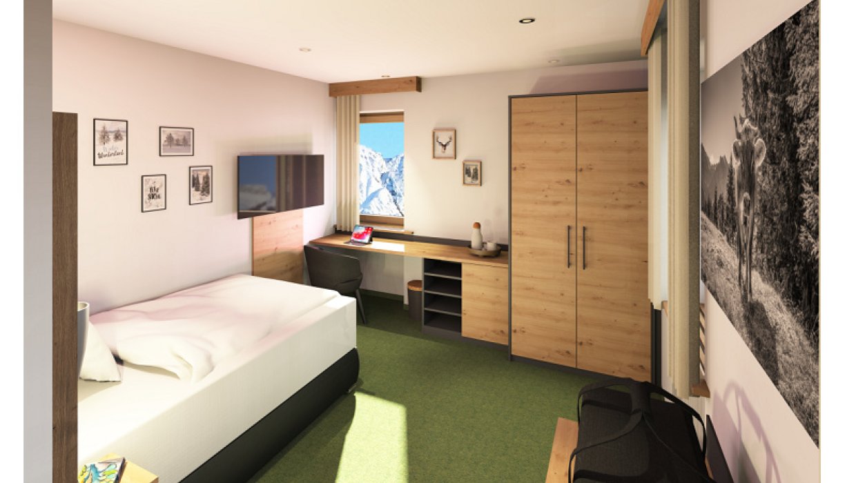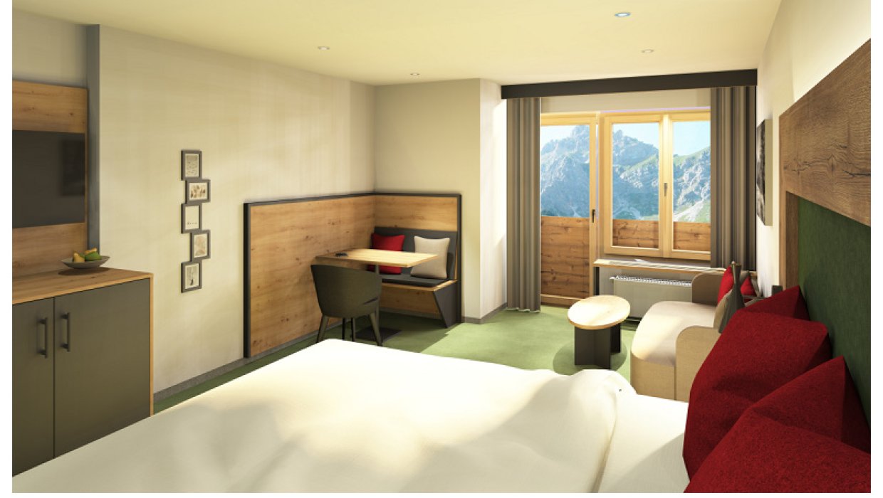 Wohlfühlzimmer (29 qm) im alpinen Stil mit DU/WC, Farb-TV, Telefon und geräumigem Südbalkon