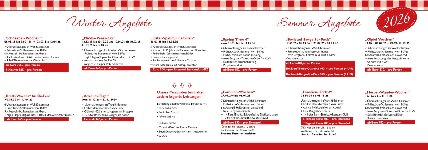 Auch unsere Pauschalen bieten zu jeder Jahreszeit das passende Zusatzangebot für Ihren einzigartigen Urlaub mit Herz im Hotel Alpengasthof Schwand