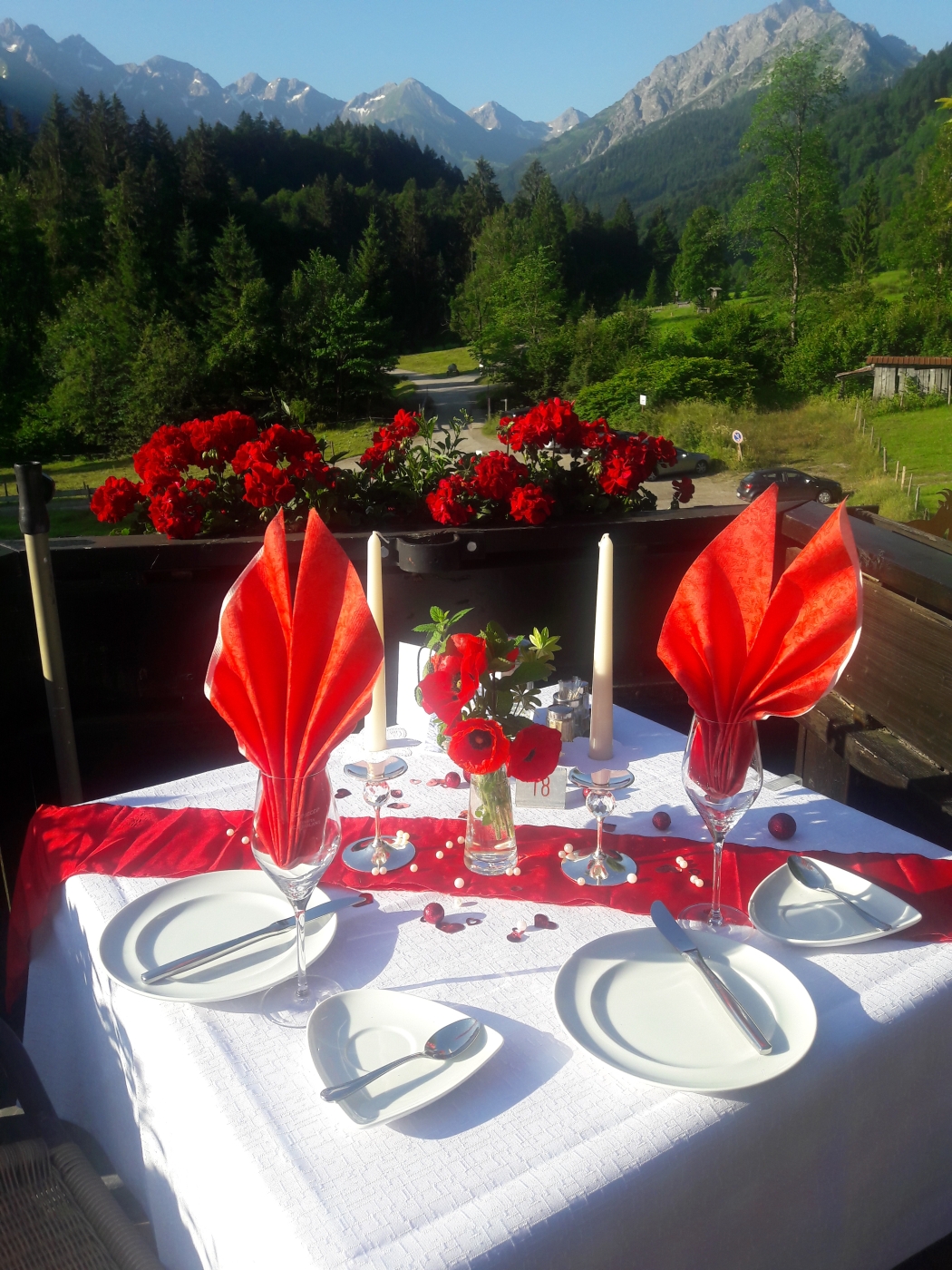 Reservieren Sie sich einen festlich gedeckten Tisch in unserem Restaurant oder auf der sonnigen Terrasse.